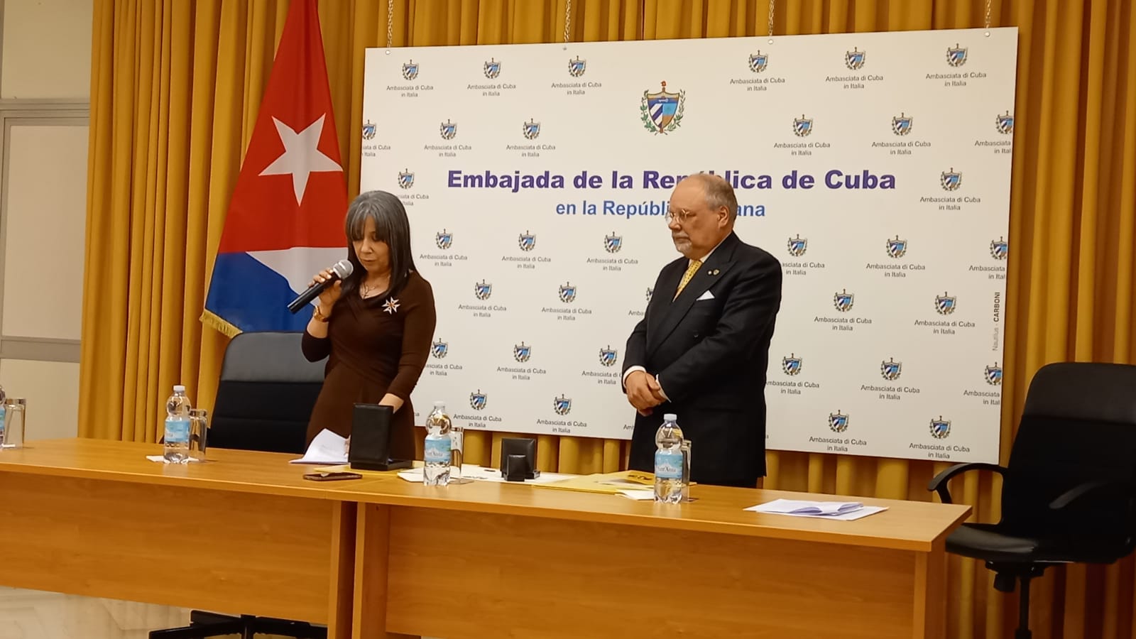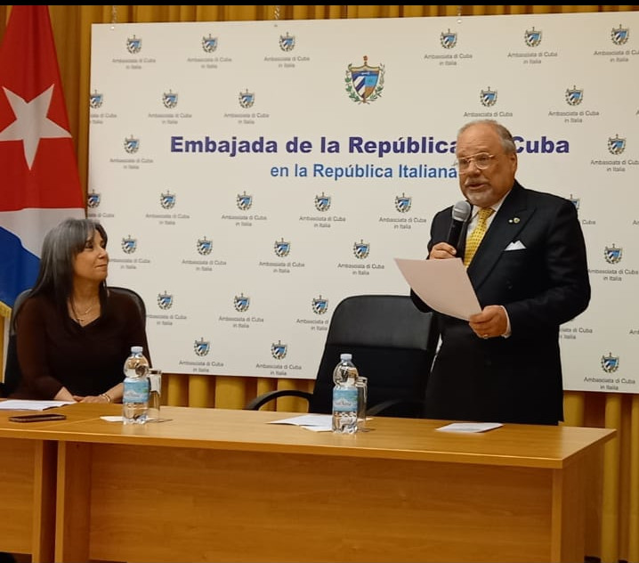 "L'impegno internazionalista pluridecennale della Brigata, che ha portato senza distinzione politica o richieste economiche aiuto medico alle popolazioni sofferenti in tutto il mondo, superando ostilità preconcette e vincendo le gravissime difficoltà imposte in modo unilaterale e con infrazione del diritto internazionale dal blocco imposto a Cuba, comprensivo anche delle forniture sanitarie essenziali, è ben noto.La consegna è avvenuta durante apposita cerimonia presso l'Ambasciata di Cuba a Roma, nelle mani di S.E. l'Ambasciatrice di Cuba in Italia, San Marino e Malta, alla presenza del Viceministro della Giustizia di Cuba S.E. Yashna Diaz, del Vicepresidente della Associazione di Amicizia Italia-Cuba, dei dirigenti dei vari uffici dell'Ambasciata e della Stampa..